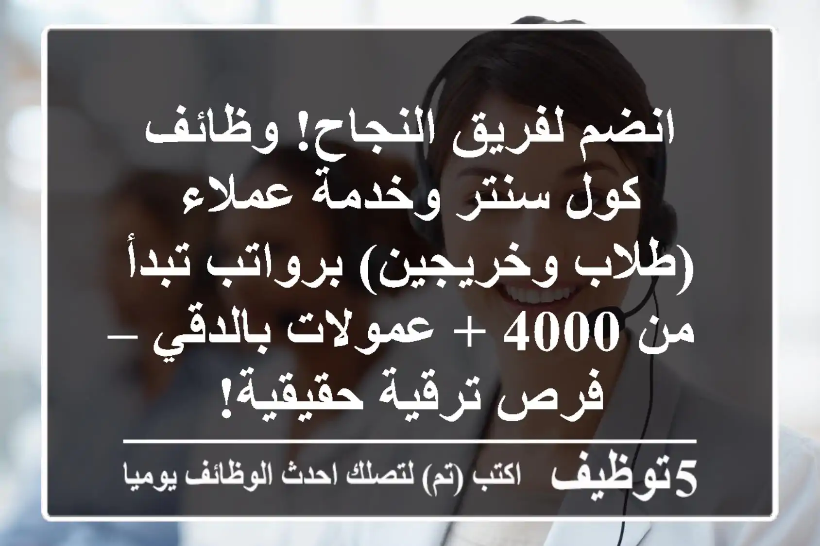 انضم لفريق النجاح! وظائف كول سنتر وخدمة عملاء (طلاب وخريجين) برواتب تبدأ من 4000 + عمولات بالدقي – فرص ترقية حقيقية!