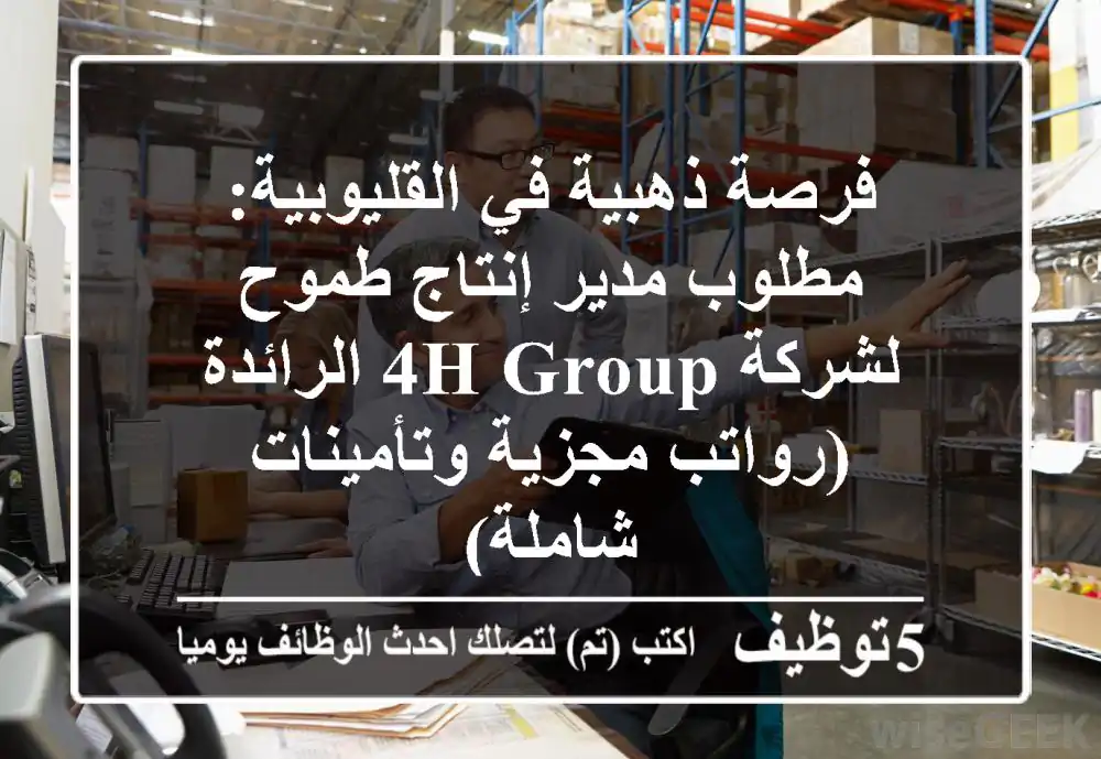 فرصة ذهبية في القليوبية: مطلوب مدير إنتاج طموح لشركة 4H Group الرائدة (رواتب مجزية وتأمينات شاملة)