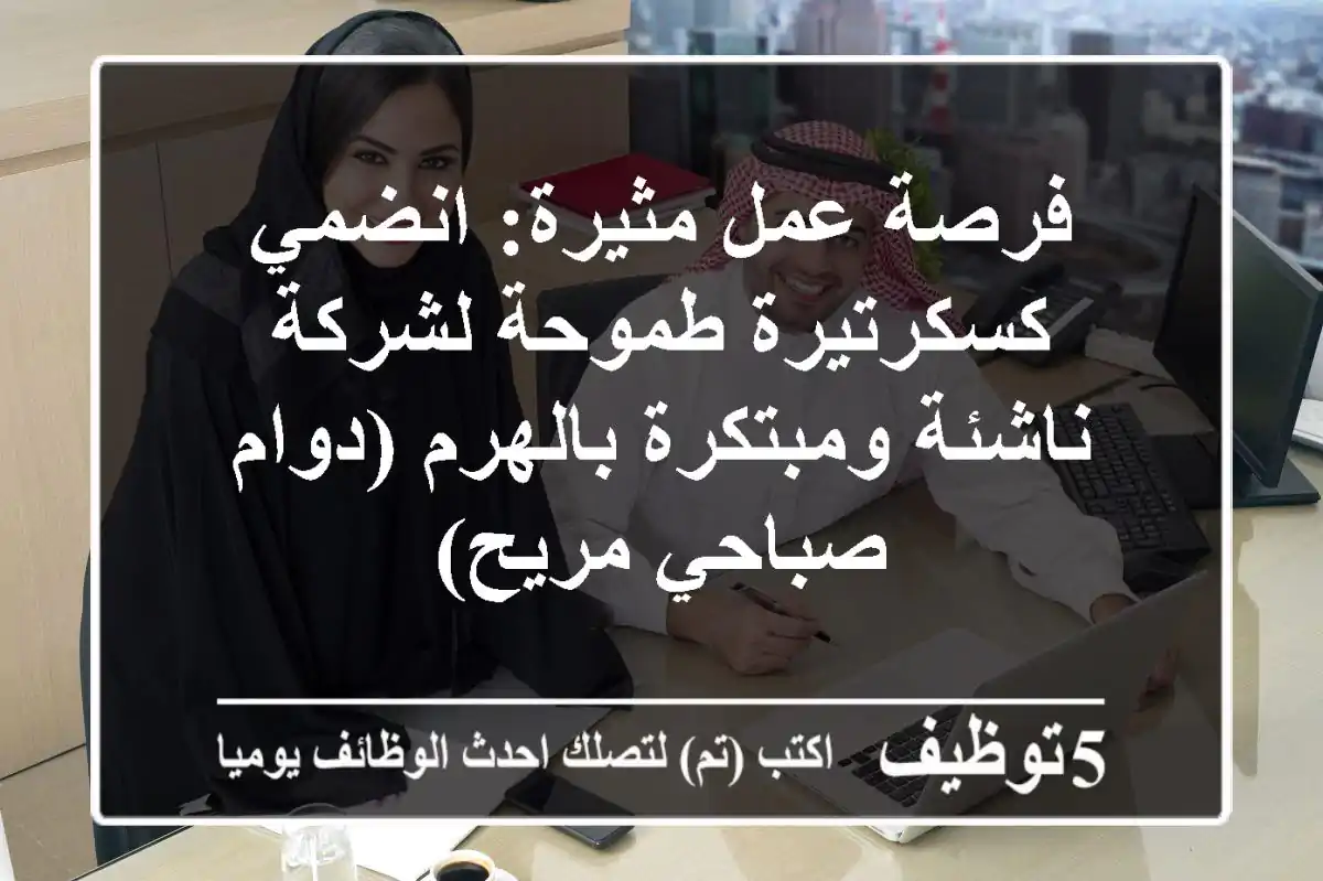 فرصة عمل مثيرة: انضمي كسكرتيرة طموحة لشركة ناشئة ومبتكرة بالهرم (دوام صباحي مريح)